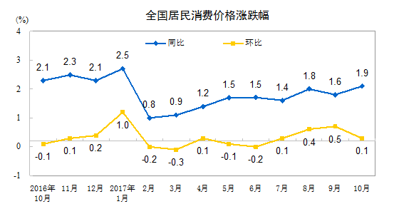2017年10月份居民消费价格同比上涨1.9%